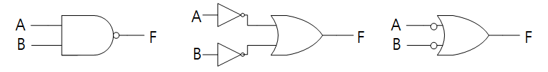 이 드 모르간의 정리는 나중에 논리식의 간략화에서도 사용할 수 있기 때문에 꼭 알아두는 것이 좋다.